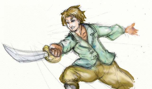 Despite the heat, this weekend ended up being very productive for me. I’m able to go back and start working on the Pirates game (again!), and as a result of that I’ve drawn a few illustrations to go with the new card designs. They’re more of a study than anything for now, but I’m still quite happy with the output: