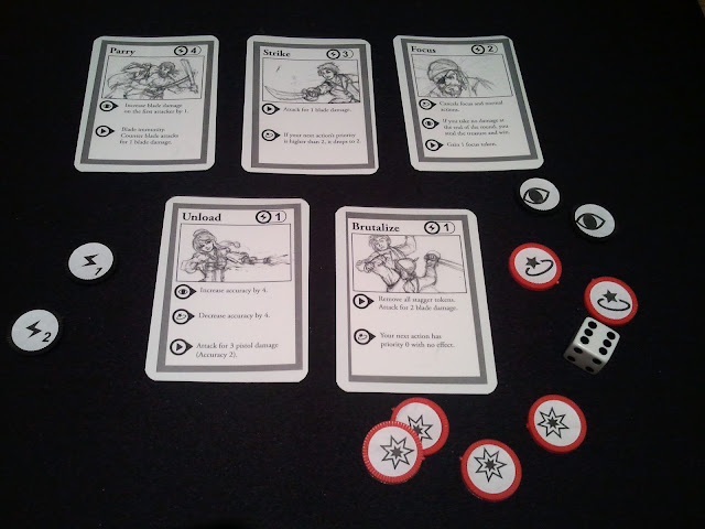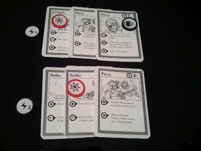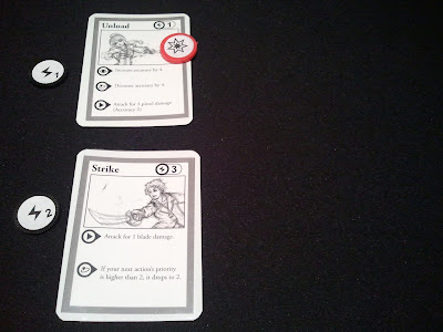 However, since focus has lower priority, the bottom player gained initiative that round. In the next round, the players have the same priority, but since the bottom player maintains initiative, the bottom player brutally finishes the top player off by dealing 2 damage. Mmm, this is not exactly what I want to happen… Yup, changes are a-coming.
