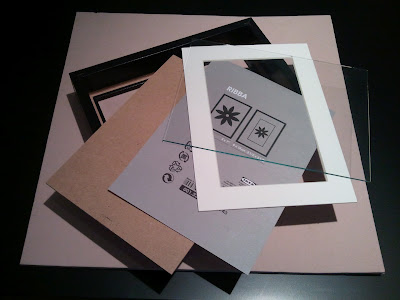 The instructions are dead simple: disassemble the picture frame. Use the paper with the bar code to measure out the size of the frame on the cardboard.